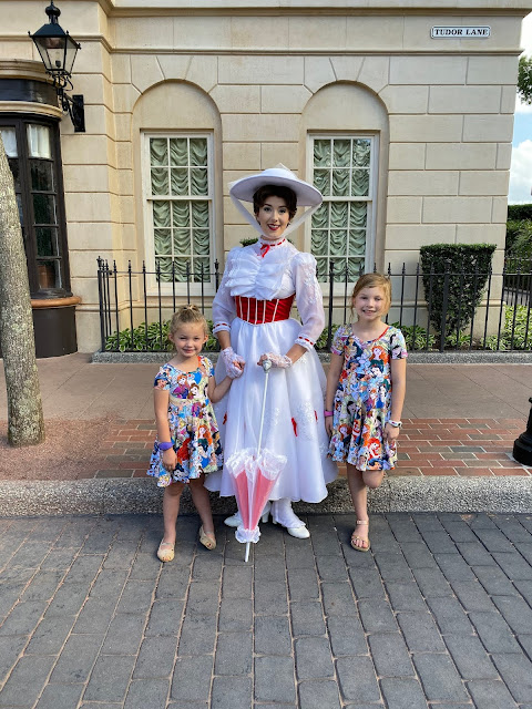 Afterward, we did the boat ride in Mexico, waited in line to meet Elsa and Anna and ride Frozen Ever After in Norway, then headed to China to meet Mulan (Jemma fell asleep just prior, so we decided not to wake her)! Next, we had a little ice cream treat and headed to The Seas and went on the Nemo ride and explored the Aquarium. We checked out Mission Space (did the easier Green Mission) and visited the United Kingdom to meet Mary Poppins and Alice! Interaction with Alice was so great, she twirled with the girls and was SO excited to see herself on their dresses!